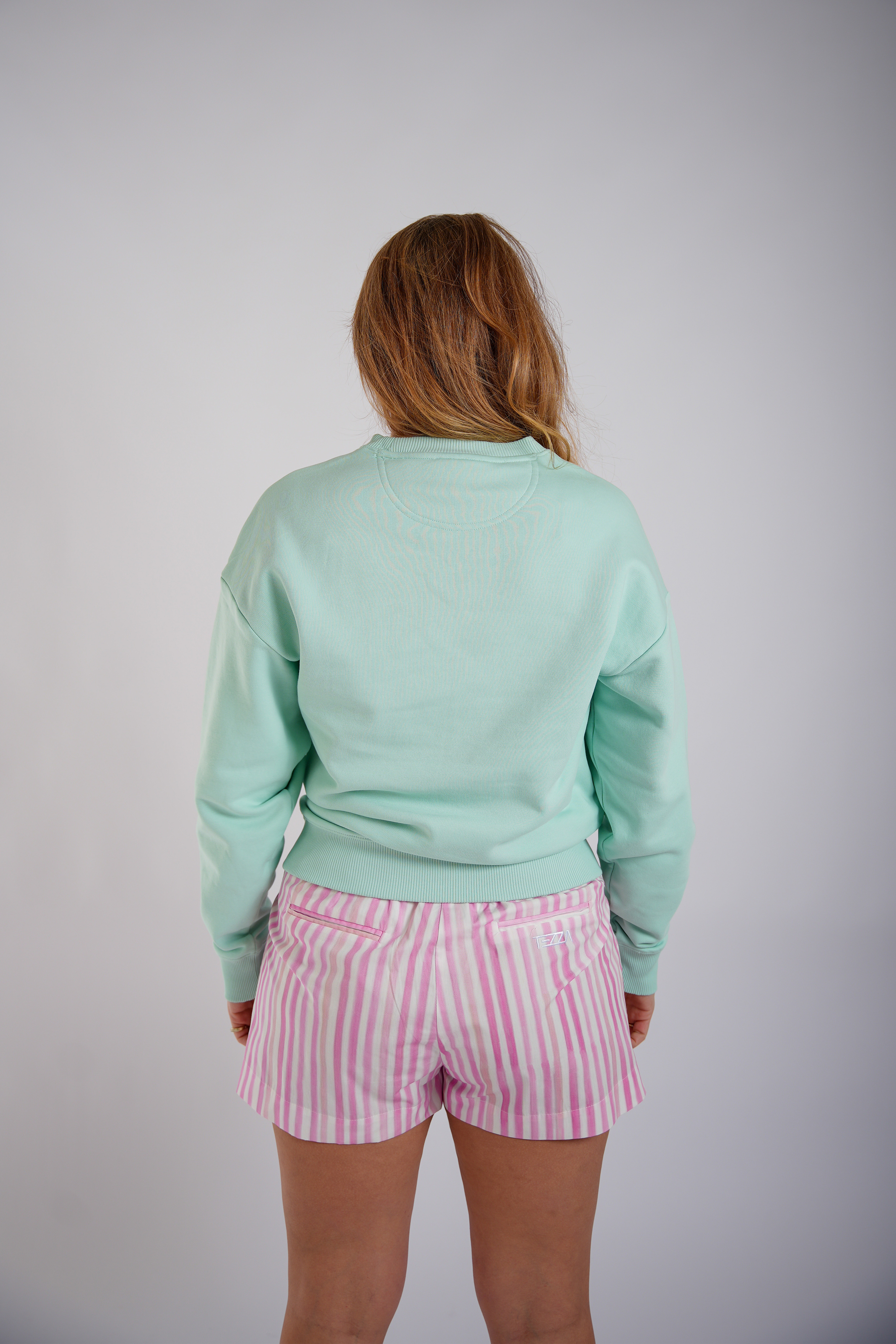 Deze acqua sweater is de perfecte mix van comfort en stijl! De oversized boyfriend fit geeft een relaxte look, terwijl de zachte mix van 85% katoen en 15% polyester heerlijk comfy zit. Het Tezza-borduursel in roze en donkerblauw voegt een speelse touch toe. Draag ‘m met je favoriete pantalon of short en chill in stijl!