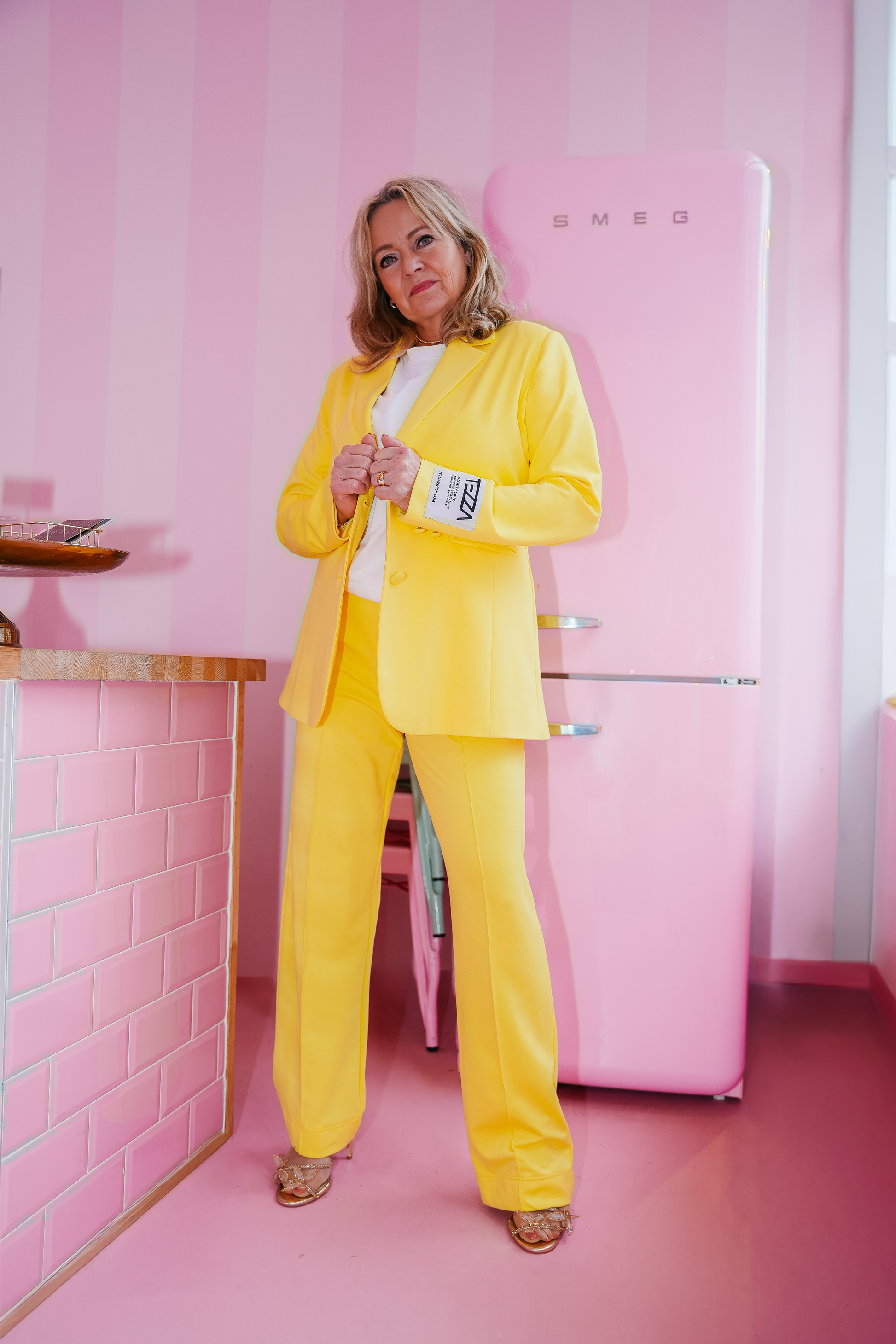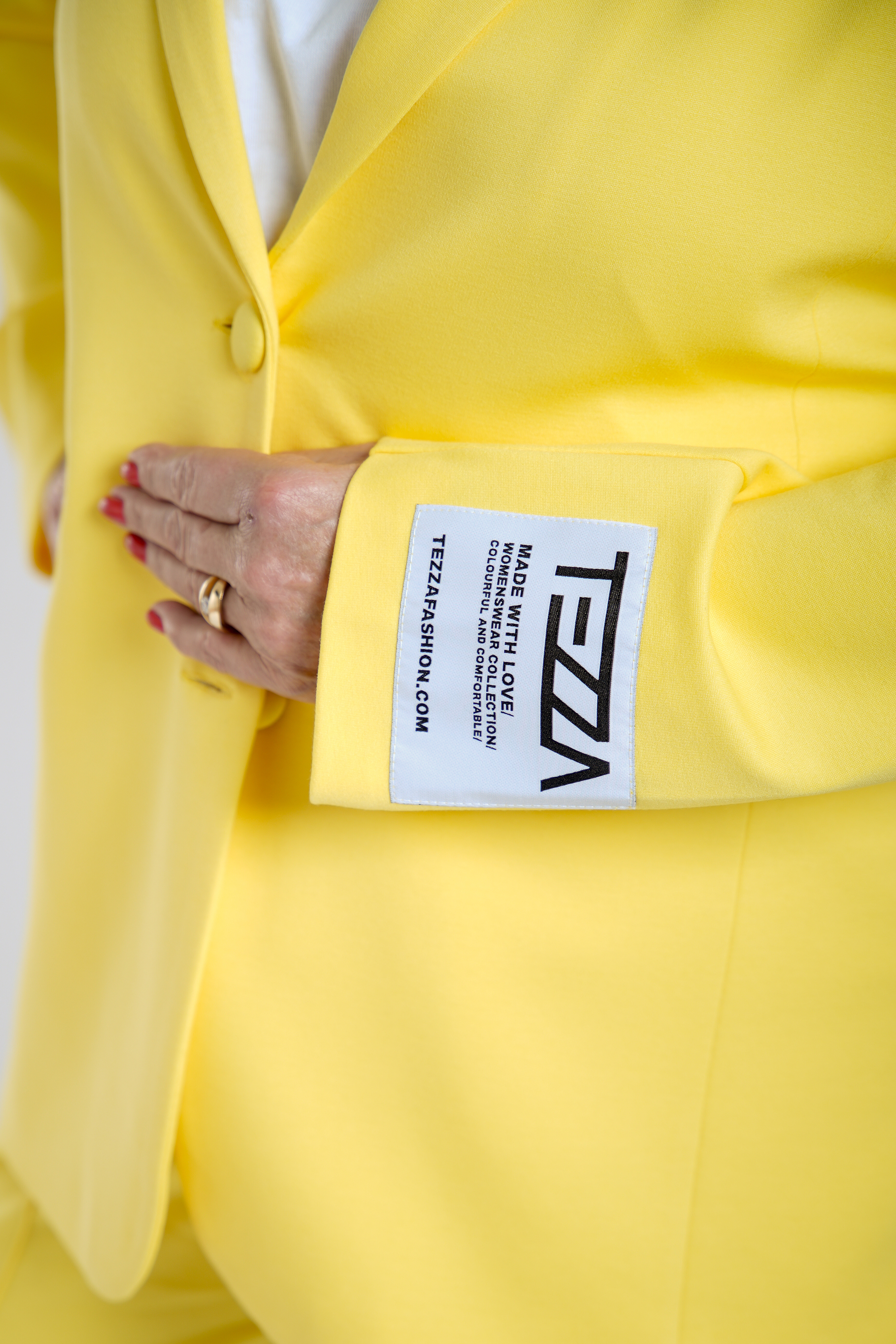 Laat je outfit spreken met deze gele blazer! De oversized fit met aansluitend elastiek in de taille zorgt voor een flatterende look. Gemaakt van een luxe mix van rayon, nylon en spandex, dus hij zit niet alleen mooi, maar ook supercomfortabel. Details zoals het TEZZA-label (gemakkelijk te verwijderen), nepzakken en een split aan de achterkant geven een trendy touch. Perfect om je look een frisse boost te geven!