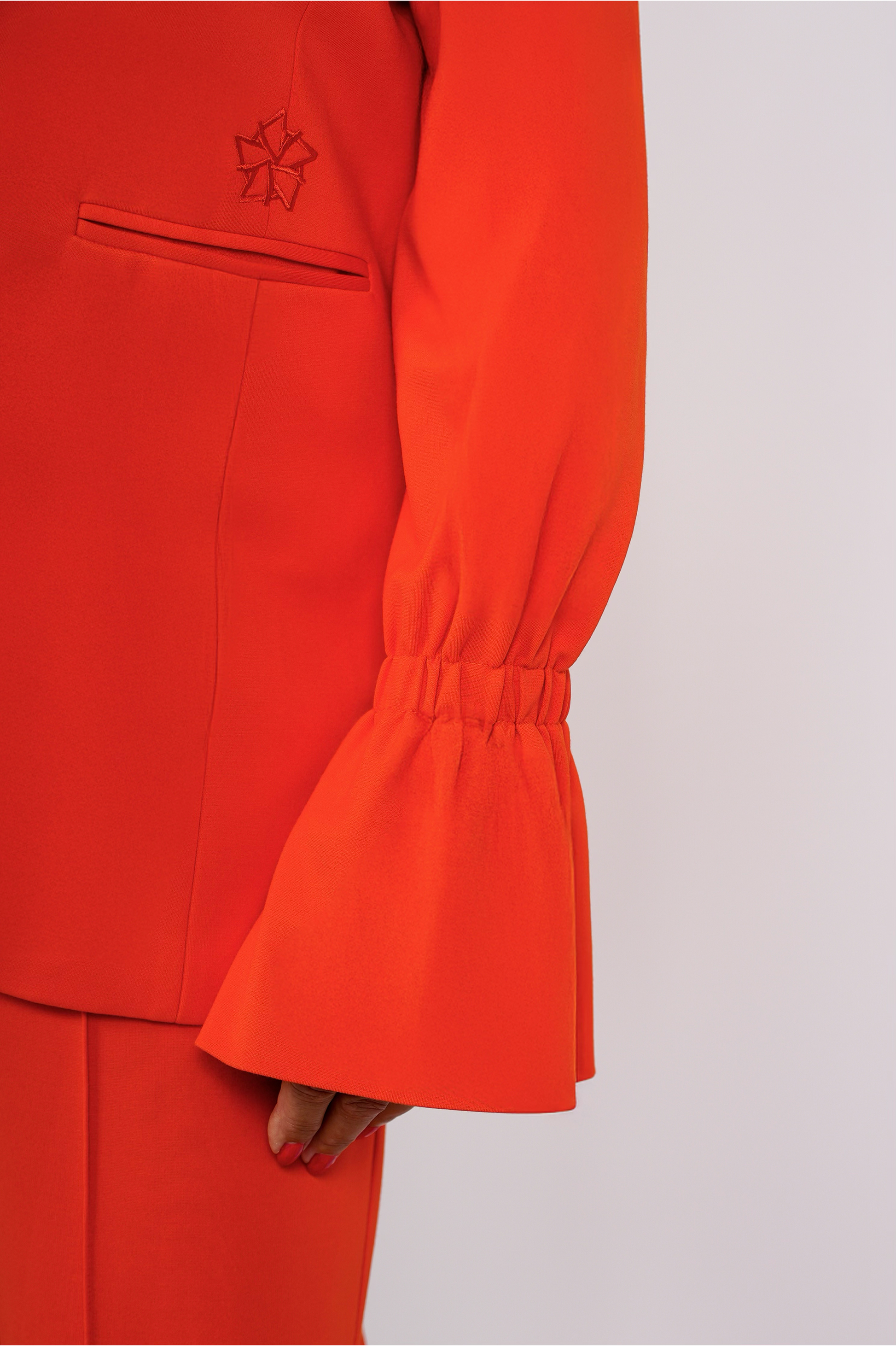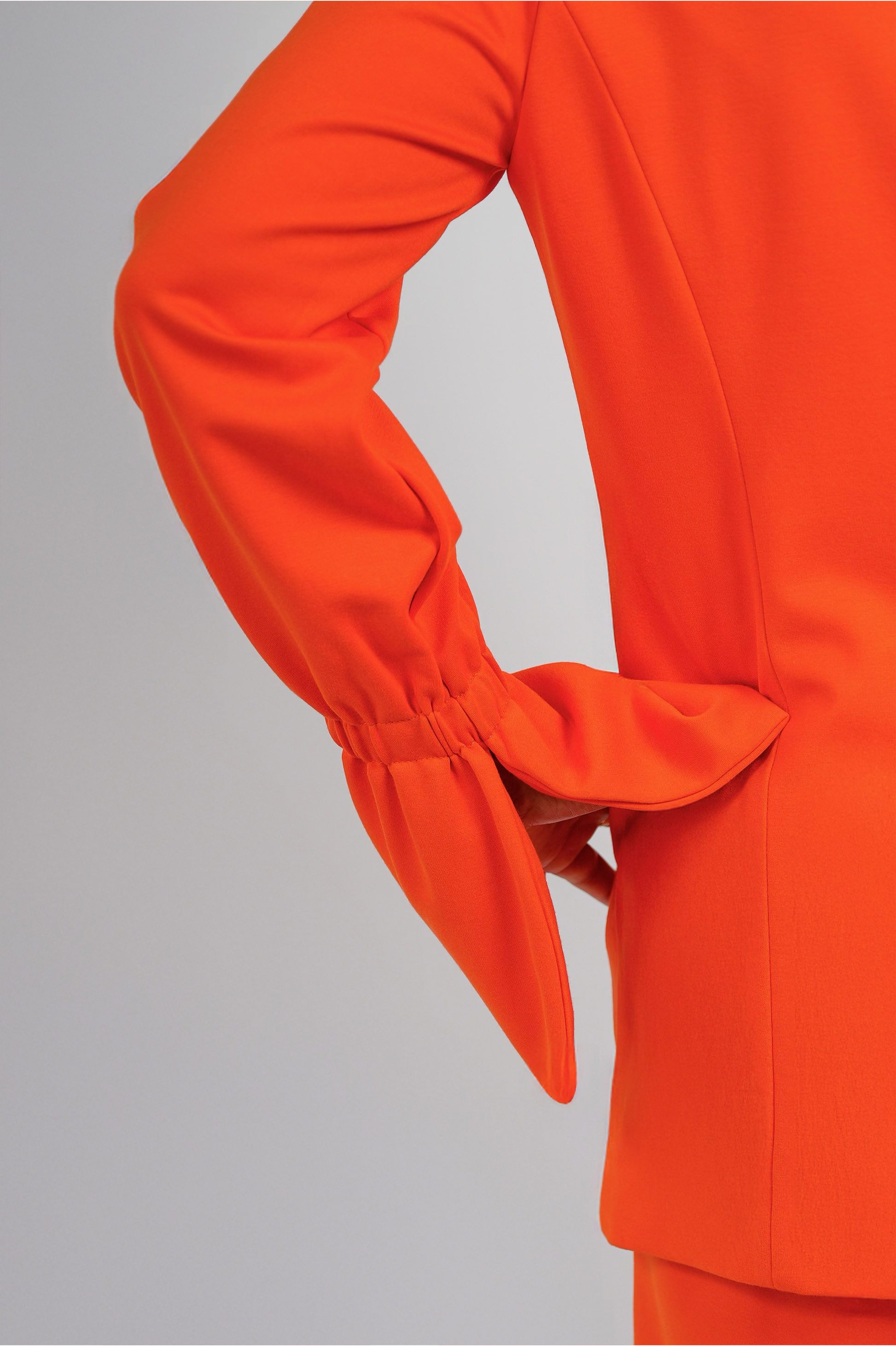 Een echte statement piece: de oversized blazer in feloranje uit de FW25 collectie. Deze blazer is uitgevoerd in een luxe mix van rayon (bamboe), nylon en spandex, een combinatie die soepel valt en comfortabel draagt.