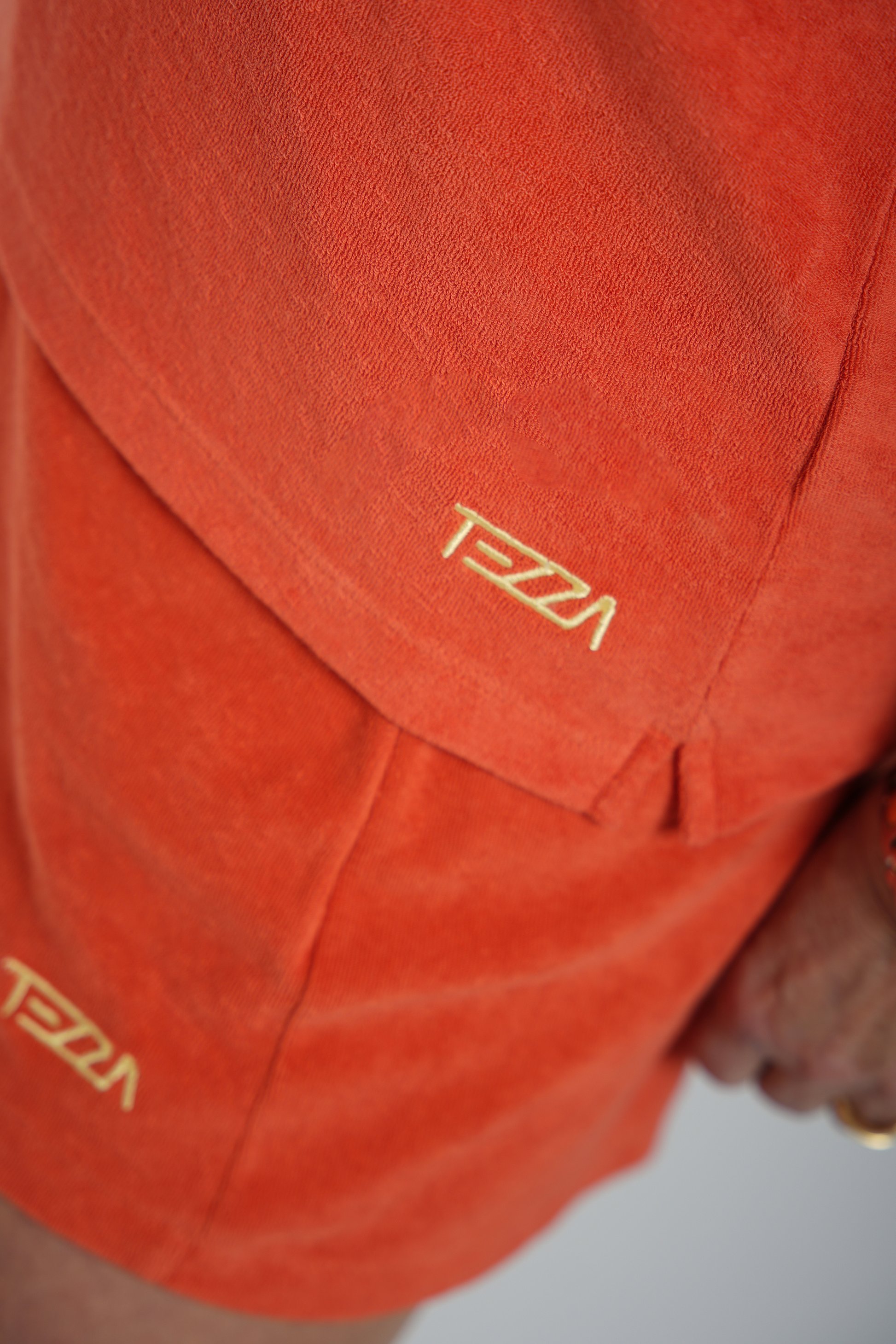 Dit koraaloranje oversized T-shirt is de perfecte mix van comfort en stijl! Gemaakt van 100% katoenen badstof, waardoor het heerlijk zacht en luchtig aanvoelt. De korte mouwen en relaxte fit geven een casual vibe, terwijl het gele TEZZA-logo op de rechterkant een speelse touch toevoegt. Draag ‘m met de bijpassende short of combineer ‘m met je favoriete pantalon voor een effortless outfit!