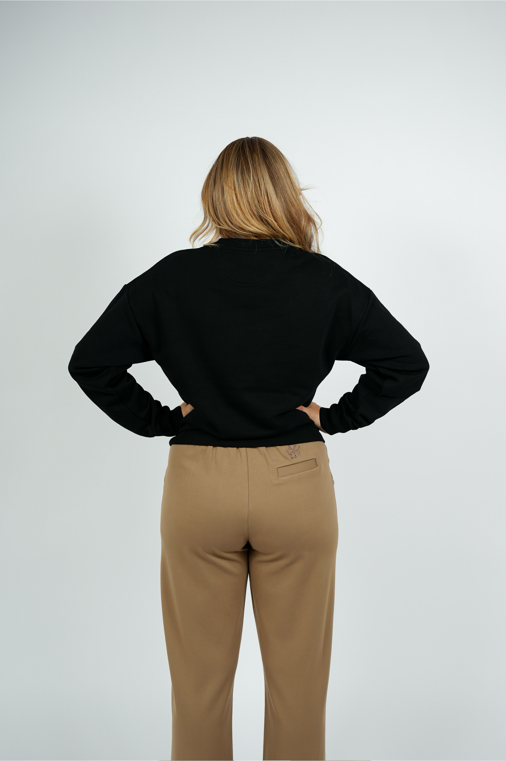 De zwarte sweater uit de FW25 collectie is een comfy essential met een stijlvolle twist. Uitgevoerd in een oversized fit met subtiele vleermuis-mouw en voorzien van een opvallende borduring aan de voorkant in camel en cobalt blauw: Tezza Fashion Girls Club Est. 2018.